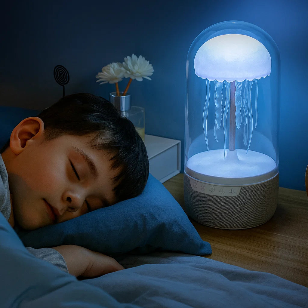 🌙✨ Las noches pueden volverse mágicas para los más pequeños con la Lámpara Medusa LED 🐙. Su luz suave 🌈, movimiento hipnótico y sonidos tranquilos 🎶 crean un ambiente perfecto para ayudar a los niños a relajarse y dormir más fácilmente 😴. Con su efecto visual en 3D, se sentirán acompañados por una medusa flotante que los invita a soñar bonito 💫.